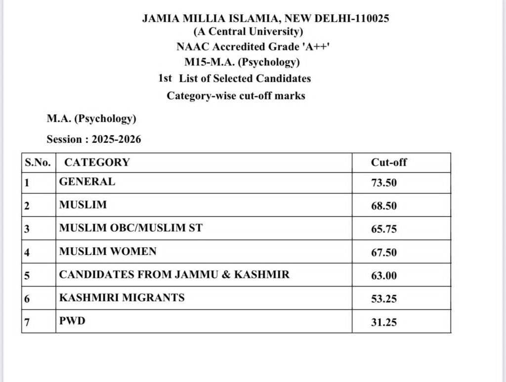 Here’s a snapshot of the 2024 Cut-off Marks for various categories in the MA Applied Psychology entrance exam: