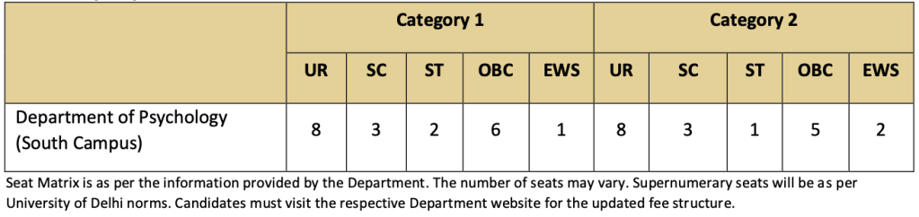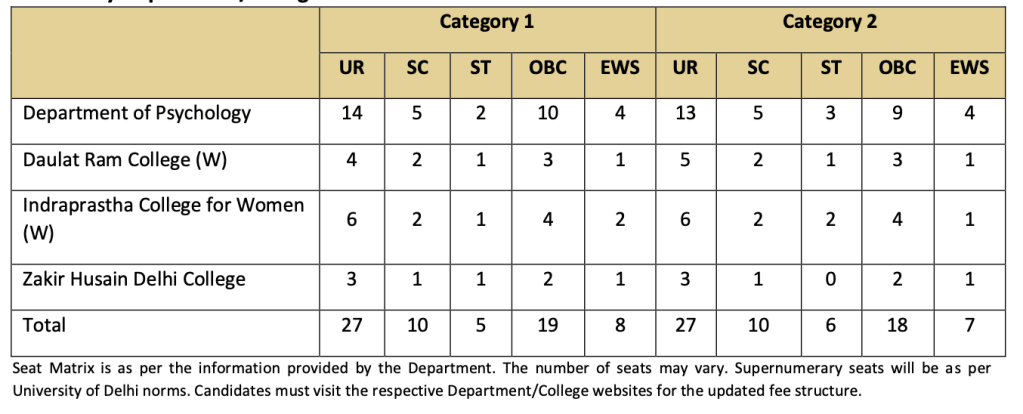 Category 2B applies to students who have pursued B.A. (Hons.) / B.A. (Prog.) with at least two (02) courses/papers in Psychology / Applied Psychology from University of Delhi.