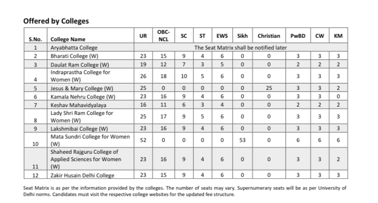 - Only CUET (UG) scores will be considered for admission to regular undergraduate programs at DU.