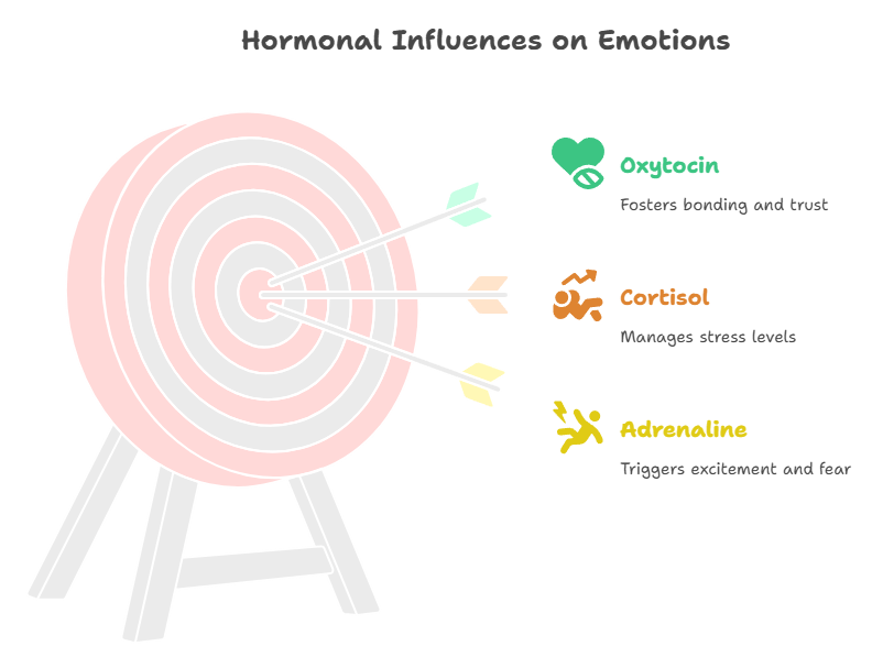 Oxytocin: The “bonding” hormone. It rises during affection and trust — like during hugs or holding a baby.