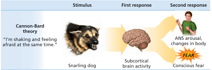 Core Idea:Body and emotion respond together. Cannon and Bard argued that the brain sends signals to the body and the emotional centers at the same time. So, you feel afraid and your body reacts — simultaneously, not one after the other.