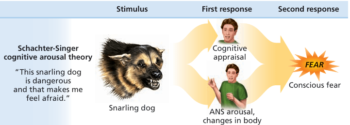 Core Idea:Emotion = Physical Arousal + Cognitive Interpretation. This theory added a mental layer: it’s not enough to feel aroused — your brain also has to interpret the context to label the emotion.
